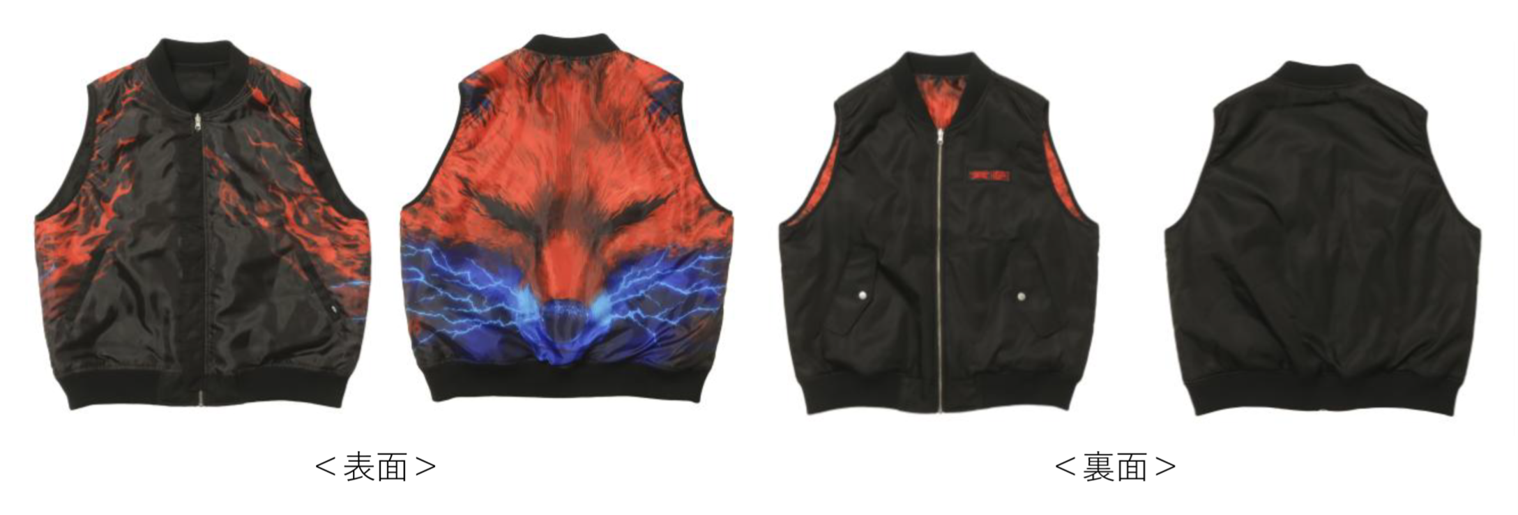 MA-1タイプのリバーシブルベスト。FOXのグラフィックが全面にプリントされたインパクト大なデザイン。