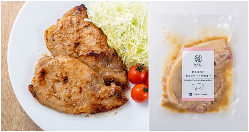 鳴門市の老舗である井上味噌醤油株式会社の白味噌を贅沢に使用。香り高い味噌が豚ロースに染み込み、焼くだけで“ご飯が止まらない”鳴門らしさあふれる逸品。