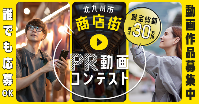 北九州市では、北九州市内の商店街の魅力を伝える、1分以内のPR動画を募集する「商店街 PR動画コンテスト」を開催しています。賞金総額は30万円!皆様のご参加をお待ちしています。