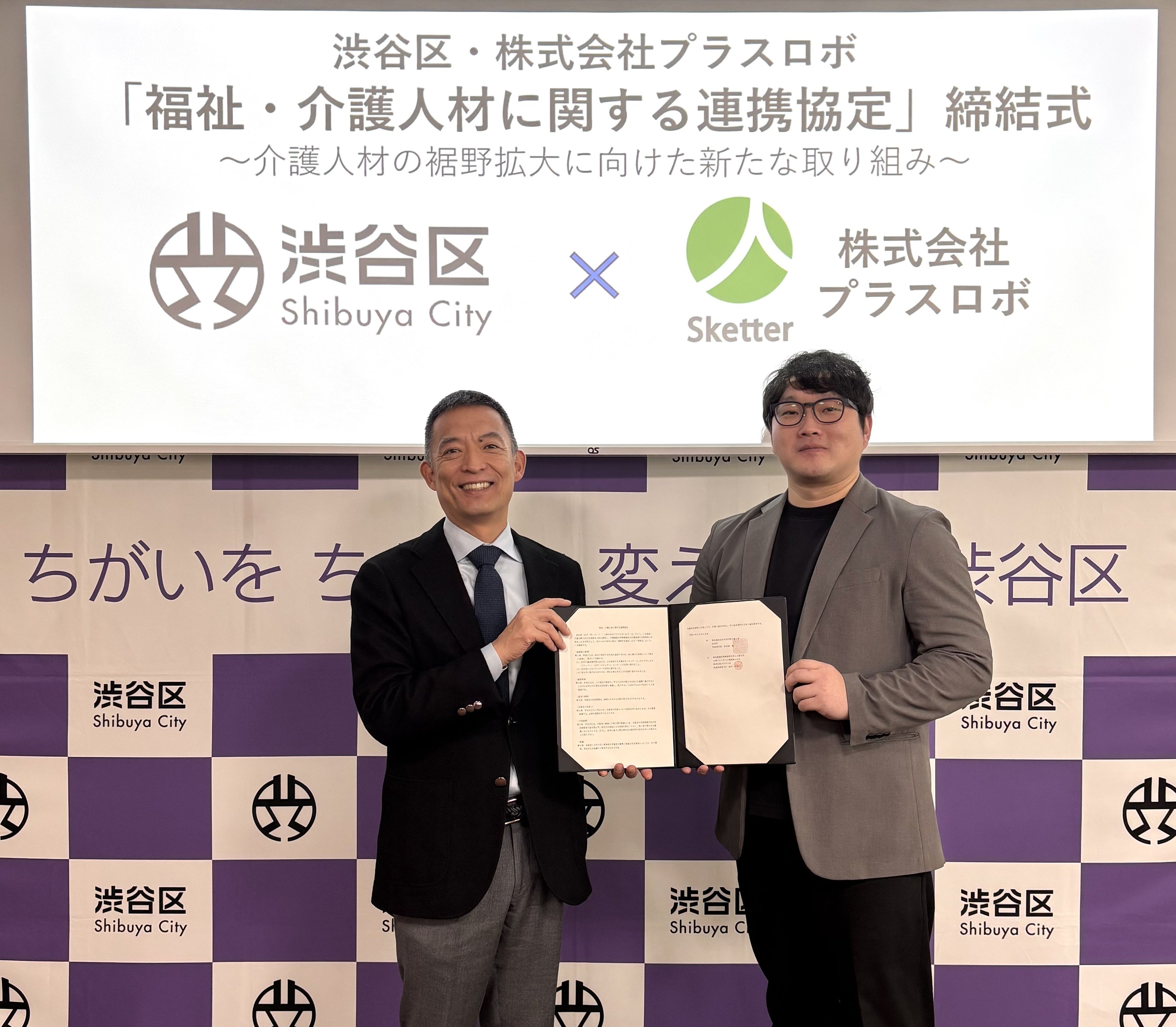 介護・福祉領域に特化した謝礼付きボランティアの地域互助プラットフォーム「スケッター」を運営する株式会社プラスロボは、東京都渋谷区と連携協定を締結しました。
