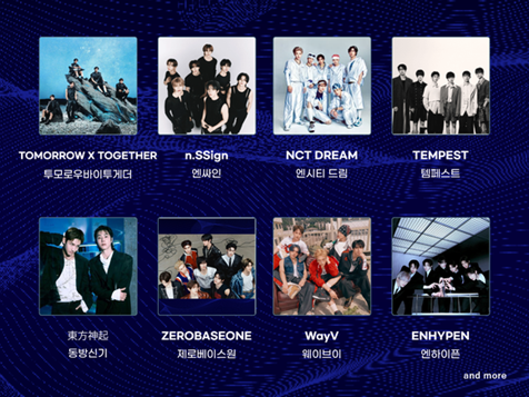 ATEEZ / BOYNEXTDOOR / CIX / ENHYPEN / EVNNE / n.SSign / NCT WISH / ONEUS / P1Harmony / PLAVE / RIIZE / SEVENTEEN / SHINee / Stray Kids / TEMPEST / TOMORROW X TOGETHER / TREASURE / TWS / NCT DREAM / MONSTA X / ZOONIZINI / WayV(威神V) / SUPER JUNIOR / ZEROBASEONE / 東方神起 / ONE PACT / THE BOYZ