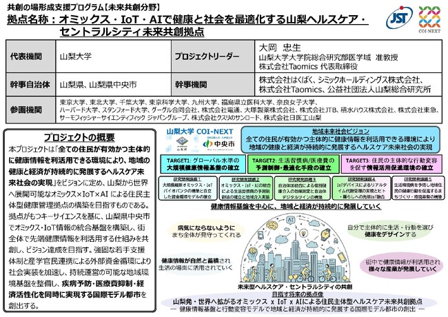 【山梨県中央市】JST「共創の場形成支援プログラム(COI-NEXT)」未来共創分野(フェーズ1)の採択決定について