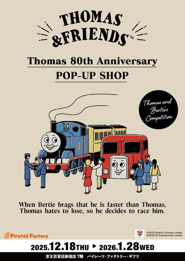 株式会社ソニー・クリエイティブプロダクツ(所在地:東京都港区、代表取締役社長:大竹 健)が日本でのマスターライセンスを保有する『きかんしゃトーマス』は原作出版80周年を記念し株式会社サンリオ(本社:東京都品川区)が『きかんしゃトーマス』の登場キャラクターをデザインプロデュースした商品の販売を2025年12月18日(木)京王百貨店新宿店にて先行販売をいたします。