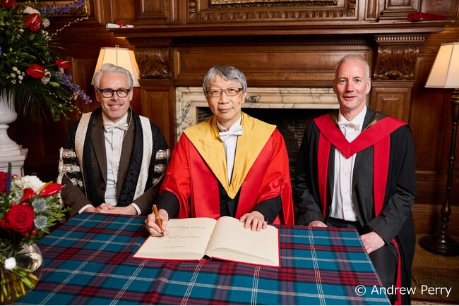 令和7年11月19日に阿波賀校長がこれまでの研究,教育及び国際活動における貢献が認められ,エディンバラ大学(英国 THE世界大学ランキング2026 29位)から名誉博士号を授与されました。