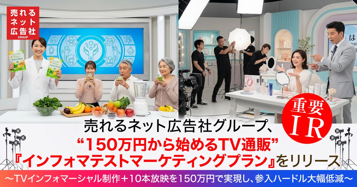 売れるネット広告社グループ、“150万円から始めるTV通販”『インフォマテストマーケティングプラン』をリリース ~TVインフォマーシャル制作+10本放映を150万円で実現し参入ハードル大幅低減~
