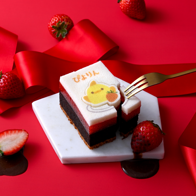 【名古屋駅】ぴよりんと楽しむ、新しいスイーツ体験。ガトーショコラにストロベリーゼリーを重ねた「ぴよりんショコラ&ストロベリー」新発売