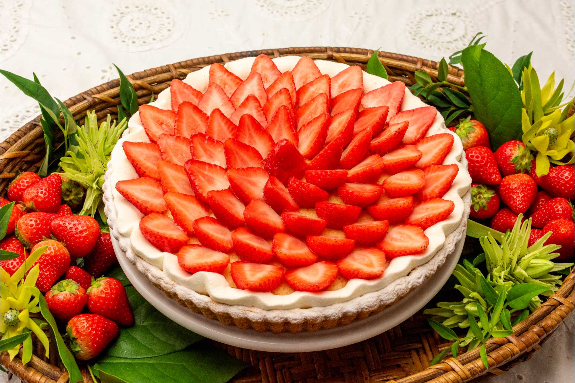 静岡生まれの“きらぴ香”を使用した、イチゴの華やかな香りいっぱいのタルトをつくりました。サワークリーム入りのホワイトチョコカスタードに自家製ジャムを加え、大粒の“きらぴ香”で飾りました。たっぷりのイチゴとクリームの組み合わせは、何度でも食べたくなる味わいです。