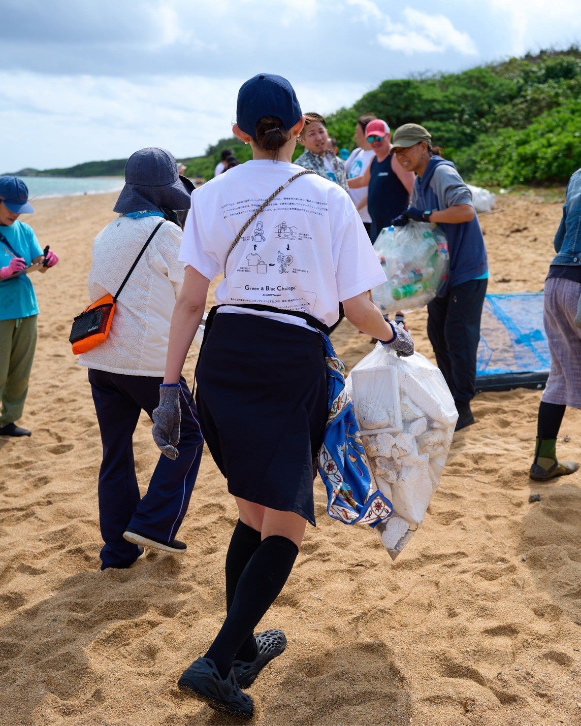 また、株式会社豊島の協力のもと、石垣島のビーチクリーンで回収したペットボトルの一部を原料として再生した100%リサイクル素材を、当社のレディースファッションブランド「emmi(エミ)」のTシャツやワンピースに採用し、廃棄プラスチックの資源循環を実現しています。