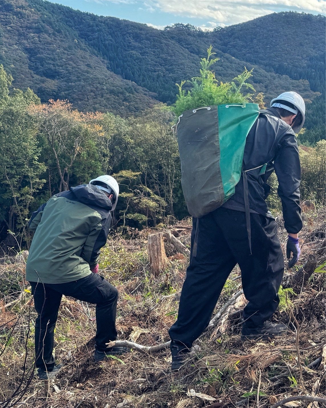 今回の植林プロジェクトによって植えたスギの苗木は合計3,300本となり、これにより削減されるCO2量は約1,093トンと試算しています。これは、マッシュスタイルラボが2024年にショッピングバッグや下げ札などの副資材の製造工程で排出したと見込まれるCO2排出量に相当します*。また、マッシュスタイルラボの展開するファッションブランドでは、12月26日(金)から、ショッピングバッグの有料化を実施し、代金の一部を「MASH GO GREEN PROJECT」の推進に活用させていただくことを決定いたしました。お客様や取引先様などステークホルダーにも協力をいただきながら、マッシュグループでは限りある資源の使用削減への取組とともに、継続的に植林プロジェクトを進め、森林づくりとともにカーボン・ニュートラルの実現を目指してまいります。