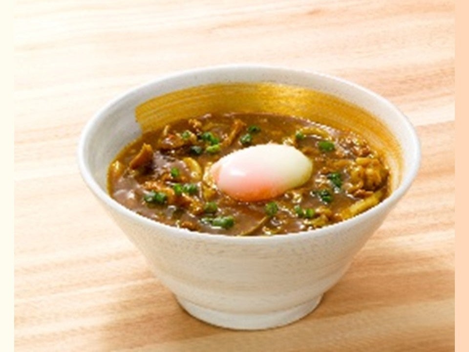 あご出汁を使用したカレーうどんは自慢の一品です。だしの旨味が効いたスープとマイルドな味わいでスパイスの芳醇な香りが食欲をそそり、温たたまる一杯です。