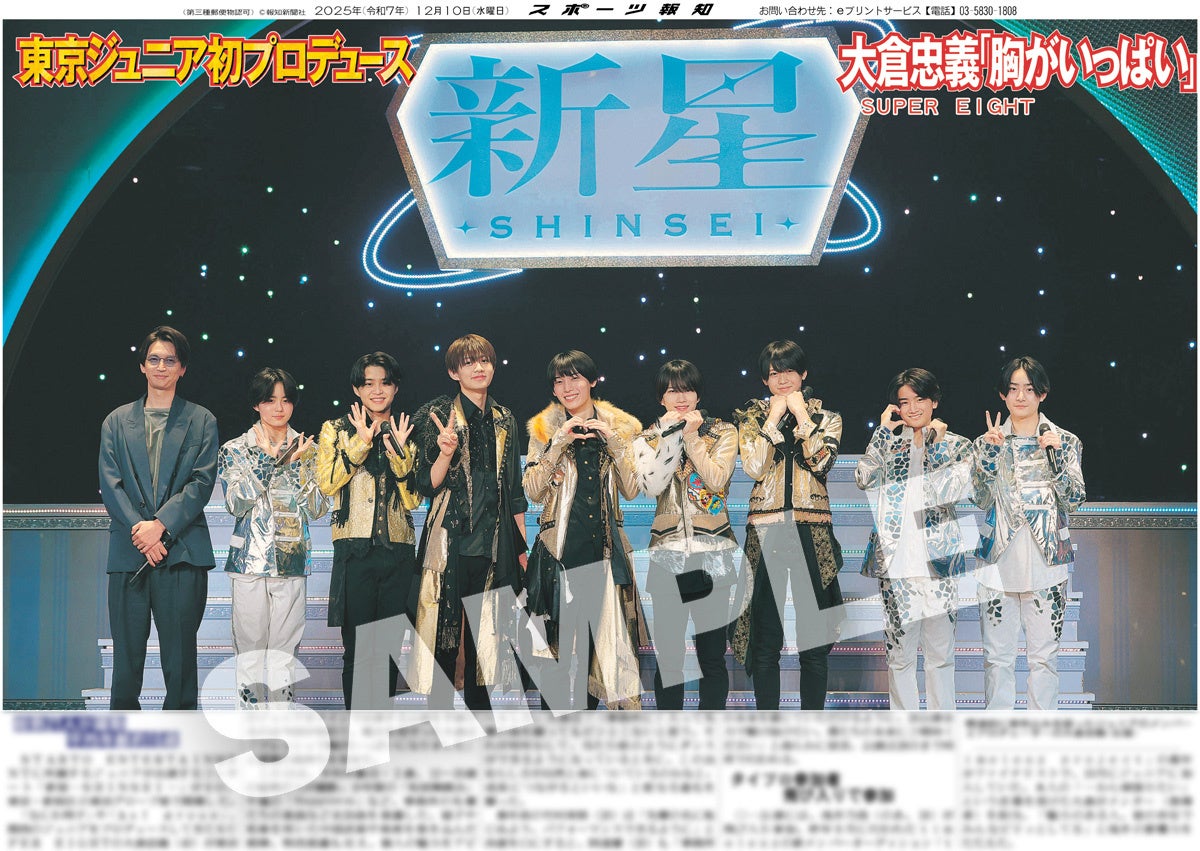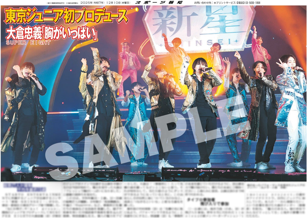 スポーツ報知を発行する報知新聞社(代表取締役社長・長谷川剛)は新聞の一部紙面をコンビニエンスストアのマルチコピー機からプリントできる「スポーツ報知コンビニプリント」サービスを展開中。スポーツ紙ならではの大きな写真を使った紙面をプリント版として販売しています。新たに12月10日付掲載、東京グローブ座で開幕したSTARTO ENTERTAINMENTに所属するジュニアが出演するコンサート「新星―SHINSEI―」とプロデュースしたSUPER EIGHT・大倉忠義の紙面を発売中です。
