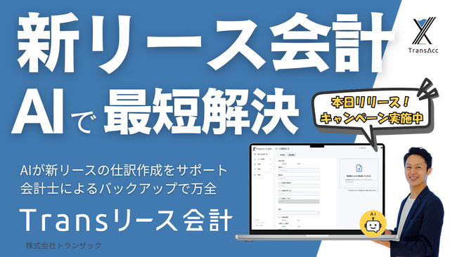 公認会計士設計のAI支援付き新リース会計クラウド「Transリース会計」正式リリース。月額2.5万円~で実務対応を実現。リリース記念キャンペーン実施中