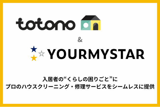 持続利用の促進によるサーキュラーエコノミーへの寄与を目指し、ハウスクリーニング・リペア・施設メンテナンス産業のIT化プラットフォーム「ユアマイスター」を展開するユアマイスター株式会社(本社:東京都世田谷区、代表取締役社長:星野 貴之)は、株式会社スマサポ(本社:東京都中央区、代表取締役社長CEO:小田 慎三、証券コード:9342、以下「スマサポ」)が提供する入居者アプリ「totono」とのサービス連携を開始しました。