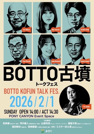 令和8年2月1日(日曜日)に高槻市に所在する国史跡「今城塚古墳」と同古墳が真の陵墓とされている「継体大王」をテーマとしたトークイベント「BOTTO古墳トークフェス」を東京都で開催!豪華出演陣がお送りする古代史・古墳ファン必見のイベントに参加し、高槻市の古代史・古墳の魅力にBOTTO(没頭)しよう!