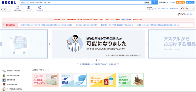 サービスの復旧は、事業所のお客様の業務継続を最優先ととらえ、ASKUL(事業所向け)サービスを先行して対応を進めております。サービスのWebサイトは、セキュリティ対策の強化を実施し安全性を確認したうえで再開、出荷は安定稼働を確認しながら順次拡大してまいります。