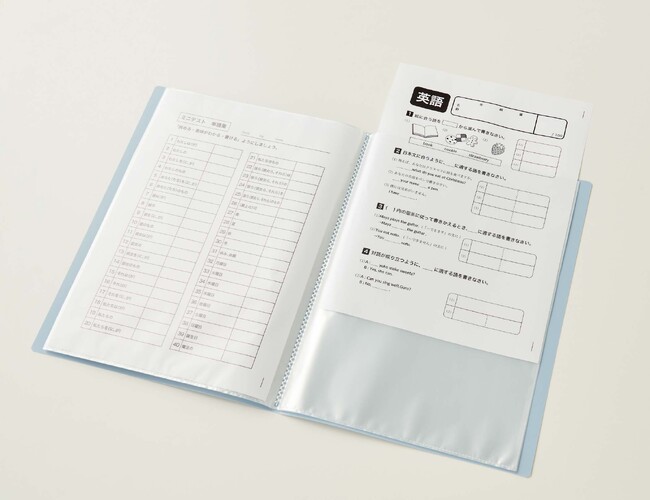 また、ご好評いただいているロングセラーファイル「年組氏名フラットファイル」と共通のデザインを採用しているため、フラットファイルとクリアーファイルを併用することでファイル管理を統一できます。先生の「管理のしやすさ」、生徒の「使いやすさ」の両立を実現しました。