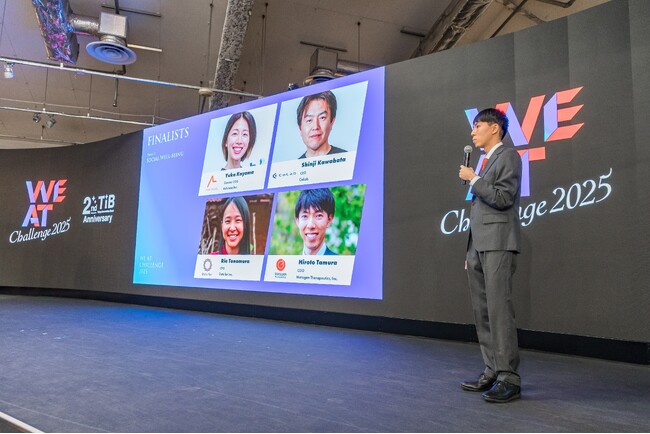 メタジェンセラピューティクス株式会社(本社:山形県鶴岡市、代表取締役社長CEO:中原拓)は、11月27日(木)に開催された、アジア最大級のWell-beingの祭典を目指すピッチコンテスト「WE AT CHALLENGE 2025 (https://we-at.tokyo/challenge/)」にファイナリストとして登壇し、「WE AT AWARD」を受賞したことをお知らせします。