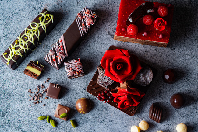 バラのエレガントな見た目、コク深い味わい。見て楽しい、食べて楽しい華やかなバレンタインをお過ごしください。