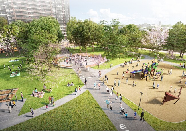 北広公園は、約50 年前に北広島団地造成時に北海道によって整備された公園であり、駅西口から約200mとアクセスに優れ、市民の皆さまに親しまれてきました。一方、年月の経過により樹木が生い茂り、施設の老朽化が進んだ結果、公園の魅力やポテンシャルが十分に発揮できていないという課題を抱えています。そこで、公園が身近にあるライフスタイルによって暮らしの質を向上させるべく、リニューアルいたします。また、北広島市の玄関口にふさわしい、市民や観光客などに幅広く親しまれる公園を目指します。リニューアルオープンは2026 年11 月を予定しており、「レ・ジェイド北海道北広島」の引渡しと同時期となります。