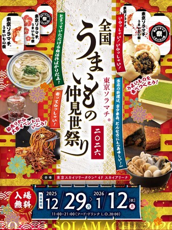 年越しもお正月も“うまいもの”で満たされる!郷土の味から話題のB級グルメまで楽しめる、東京ソラマチ(R)「全国うまいもの仲見世祭り」2025年12月29日(月)~2026年1月12日(月・祝)開催