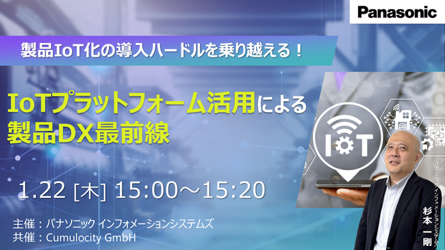 パナソニック インフォメーションシステムズ株式会社は、2026年1月22日(木)『製品IoT化の導入ハードルを乗り越える!IoTプラットフォーム活用による製品DX最前線』セミナーを開催します。