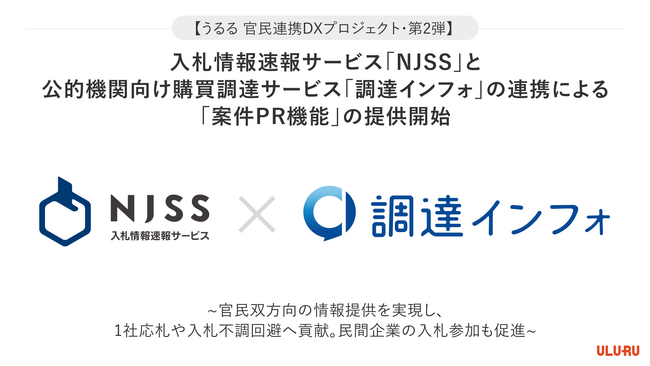 【うるる 官民連携DXプロジェクト・第2弾】入札情報速報サービス「NJSS」と公的機関向け購買調達サービス「調達インフォ」の連携による「案件PR機能」の提供開始