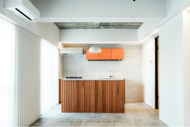 本ショールームは、61.14平方メートル ・築49年の中古マンションの一室をリノベーションし、単身者・ふたり世帯向けに、都市的ライフスタイルを提案するショールームです。将来的な売り貸しを見据えた利便性の高い立地を選択し、忙しい都市の生活に落ち着きをもたらすタイパ重視の間取りと、ホテルライクなデザインを採用しました。