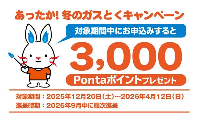 「東電ガス とくとくガスプラン for au」新規申込みで3,000Pontaポイントプレゼント!冬のキャンペーン開始