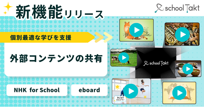株式会社コードタクト(本社:東京都渋谷区、代表取締役CEO:後藤 正樹)の授業支援クラウド「スクールタクト」は、スクールタクト上でNHK for Schoolやeboardの動画コンテンツ(以下コンテンツ)を検索し、リンクなどコンテンツに紐づく関連データを先生が作成する単元ごとの資料として管理・共有できる新機能「外部コンテンツの共有」をリリースしました。