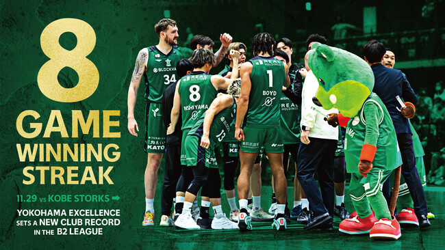 この日の勝利によりB2リーグでのクラブ史上最長連勝を更新する8連勝を達成しました!
