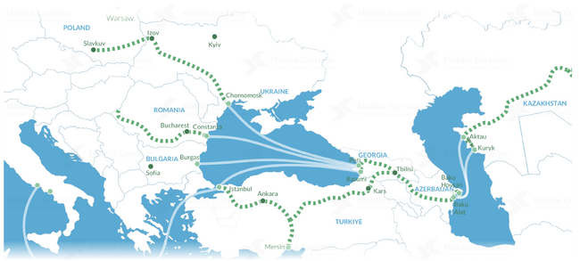 図:トランス・カスピ国際輸送ルート(通称:中央回廊)概要図 出典:Middle Corridor Official Website