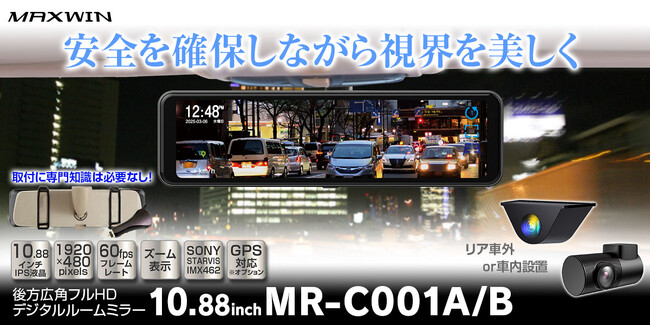 カー用品ブランドMAXWIN(運営:昌騰有限会社、所在地:大阪府泉大津市)は、10.88inchゴムバンド取り付けタイプのデジタルミラーシリーズから、高画質60fpsリアカメラを採用し、まるで肉眼で見ているような美しい映像を実現したのハイスペックモデル『MR‐C001』の再入荷と再販開始をお知らせします。