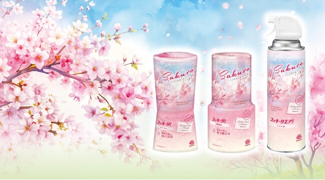 (写真左)『スッキーリ! トイレ用 ココロ浮き立つさくら便り』 (写真中)『スッキーリ! お部屋用 ココロ浮き立つさくら便り』 (写真右)『スッキーリエア! トイレ用 ココロ浮き立つさくら便り』