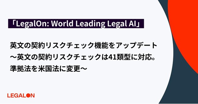 株式会社LegalOn Technologies(本社:東京都渋谷区 代表:代表取締役 執行役員・CEO 角田望)が提供する「LegalOn: World Leading Legal AI」( https://www.legalon-cloud.com/ )にて、英文の契約リスクチェック機能をアップデートしました。本アップデートにより、41類型に対応した英文レビューを提供するとともに、アラート表示における言語選択に日本語と英語の双方を追加し、より幅広いシーンでの英文契約レビューを支援します。加えて、グローバル企業の法務部門が同一プラットフォーム上でシームレスに英文契約のレビューを行える環境がさらに強化されました。