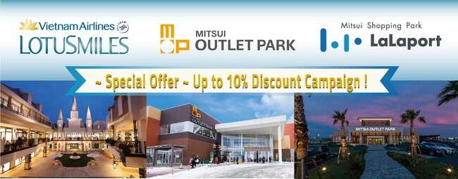 ベトナム航空(日本支社:東京都千代田区、総支配人:ゴー・シー・アイン)は、三井不動産商業マネジメント株式会社(本社:東京都中央区、代表取締役社長:大林 修)が運営する「三井アウトレットパーク」および「三井ショッピングパーク」との間で、初となるコラボレーションキャンペーンを実施いたします。