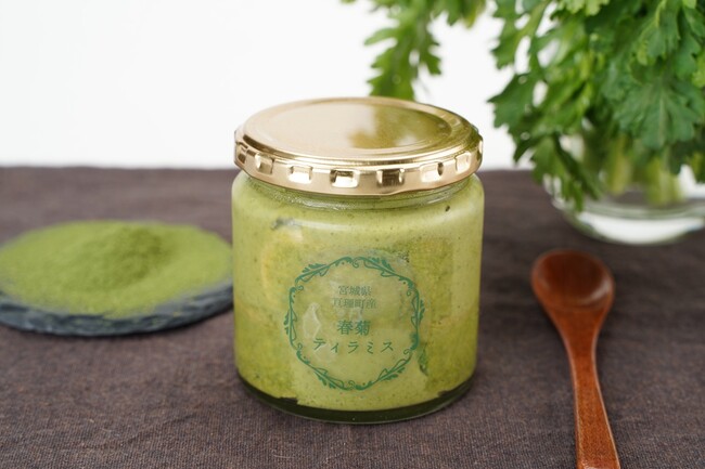 宮城県亘理町のふるさと納税返礼品に『春菊ティラミス』を登録。町の特産品「春菊」を使用し、「春菊のまち、亘理」をアピール。