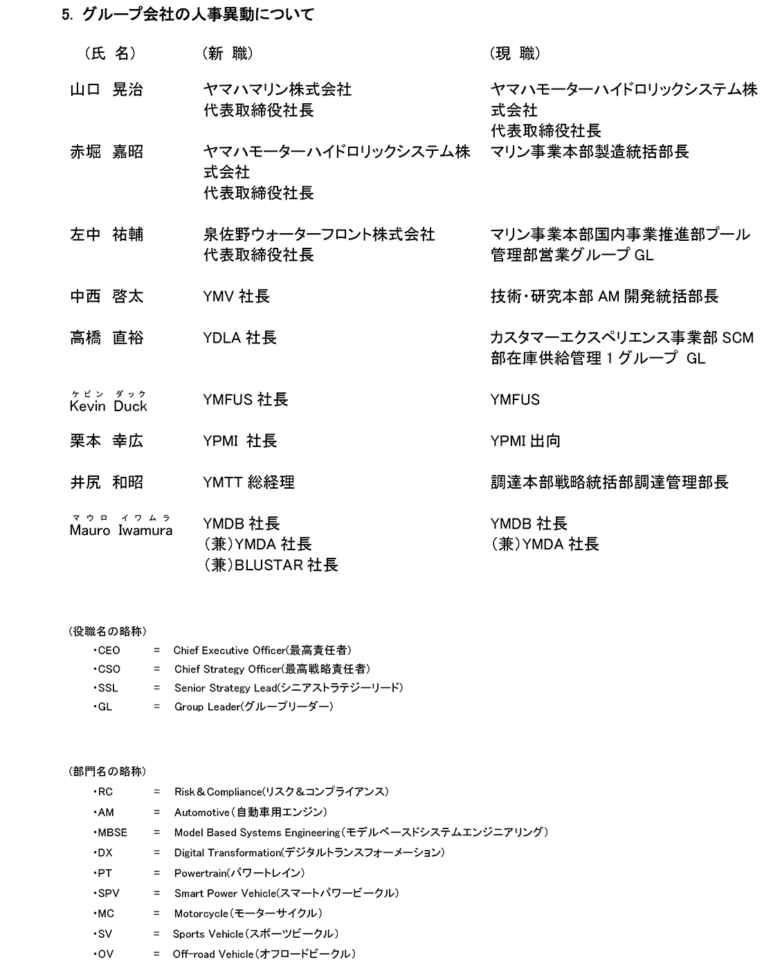ヤマハ発動機株式会社は、2025年12月23日開催の取締役会において、2026年1月1日付の組織変更と人事異動を下記のとおり決定しました。