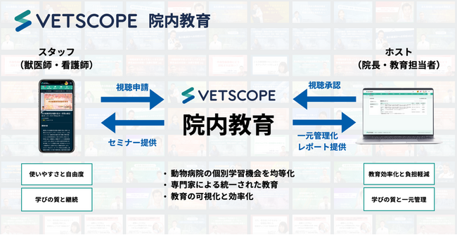 ベットピアでは、「獣医療の学びをより身近に」を掲げ、これまでに250本以上のセミナーを専門家と共に提供してきました。今回、そのコンテンツを病院単位で体系的に利用できる仕組みとして「VETSCOPE院内教育」を開発しました。