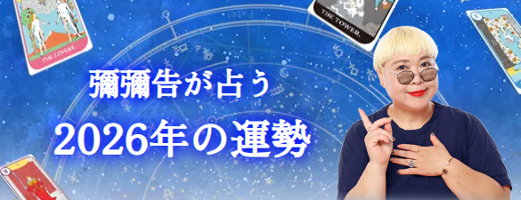 彌彌告の公式占いサイト「彌彌告(みみこ)の占い|ホロスコープ」では、この度、「彌彌告が占う2026年の運勢」を一般向けに公開致しました。まだ当サイトへの会員登録がお済みでないお客様にも、気になる2026年の運勢を占っていただけるページとなっております。