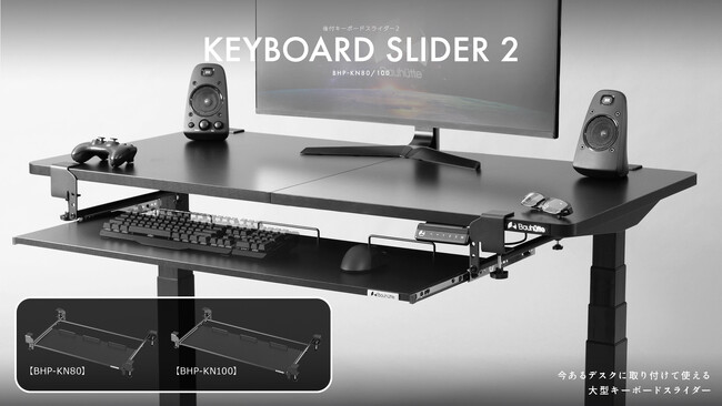 デスク天板を「2段」に拡張!4点固定でキーマウもグラつかない、超大型の『後付キーボードスライダー2』発売