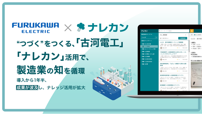 株式会社Stock(代表取締役社長:澤村大輔、本社:東京都中央区、以下「当社」)は、古河電気工業株式会社(代表取締役社長:森平英也、本社:東京都千代田区、以下「古河電工」)における、ナレッジ管理ツール『ナレカン』の導入後の運用状況についてお知らせいたします。
