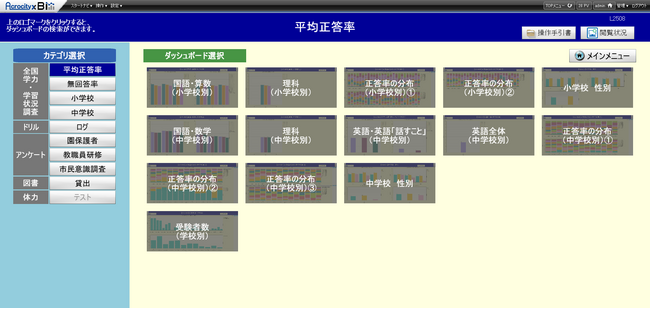 本取組において、当社のEBPM支援ツール「Acrocity×BI」は、学習データを集約し、児童生徒単位から学年・学校単位までの学習傾向を可視化する機能を提供しています。また、分析結果をレポートとして整理することで、教員がデータを確認・活用するための作業負担の軽減を支援しています。これにより、指導内容の検討において、データを参考とした意思決定が行われる環境が整備されています。