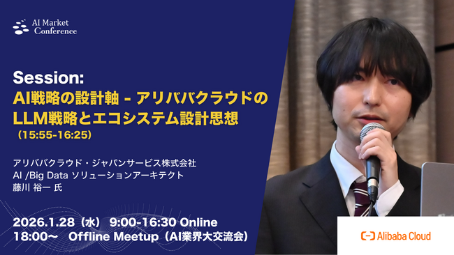 【登壇情報】アリババクラウド・ジャパンサービス 藤川氏による「AI戦略の設計軸 - アリババクラウドのLLM戦略とエコシステム設計思想」|1.28|AI Market Conference 2026