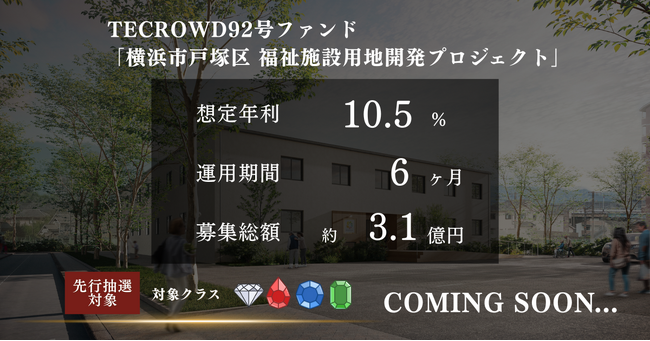 【想定年利10.5%】国内キャピタルゲイン型ファンド「横浜市戸塚区 福祉施設用地開発プロジェクト」に投資するTECROWD92号ファンドの先行情報を公開