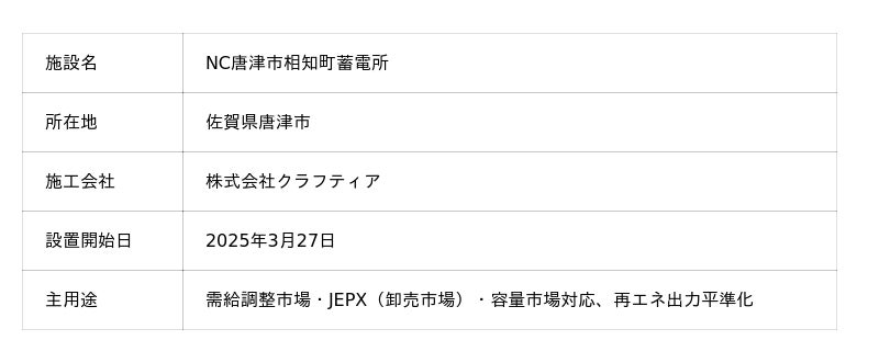【日本蓄電池株式会社】佐賀県唐津市にて系統用蓄電施設「NC唐津市相知町蓄電所」蓄電池設置開始