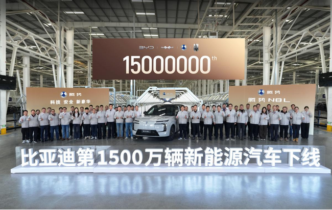 BYD(本社:中国・広東省深圳、会長兼社長:王伝福)は2025年12月18日、中国・山東省の済南工場にて、新エネルギー車(NEV)の累計生産1,500万台達成を祝うラインオフ式典を開催しました。