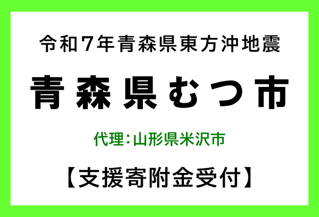山形県米沢市(市長:近藤洋介)は、令和7年12月8日に発生した青森県東方沖地震により被災した青森県むつ市を支援するため、ふるさと納税による代理寄附の受付を開始しました。