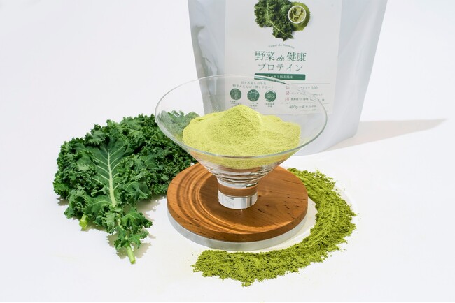 そうした声をきっかけに、野菜とたんぱく質を一度に摂れる手段として開発したのが「野菜de健康プロテイン」です。