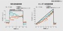 図5に代表的な一例を示す。学習前(図5 上段)の金魚のVOR(緑線)は前庭刺激(黒線、上下反転)に対して、三半規管の特性により徐々に減衰した。その後3時間以上右回りのみに回転する視覚刺激を与え続けられた金魚は良く予測性OKRを獲得し、暗闇で予測的な眼球速度振動(図5 中段)を示した。学習後(図5 下段)のVOR(オレンジ線)には振動(オレンジ点線矢印)が生じた。すなわち、視覚刺激によって獲得された予測的なリズムが、前庭刺激によって再び誘発されたことを示している。