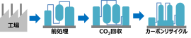 異業種 5 社連携で開発に取り組む「CO₂回収装置」は、工場の燃焼排ガスなど比較的高濃度の気体から CO₂を回収するアミン含有ゲル技術と、排熱を利用した省エネ運転、さらに NOx(窒素酸化物) /SOx(硫黄酸化物)の除去前処理を組み合わせた技術です。プラントのコンパクト化や、他のソリューションとの組み合わせで、中小企業にも導入しやすいモデルの構築を目指します。